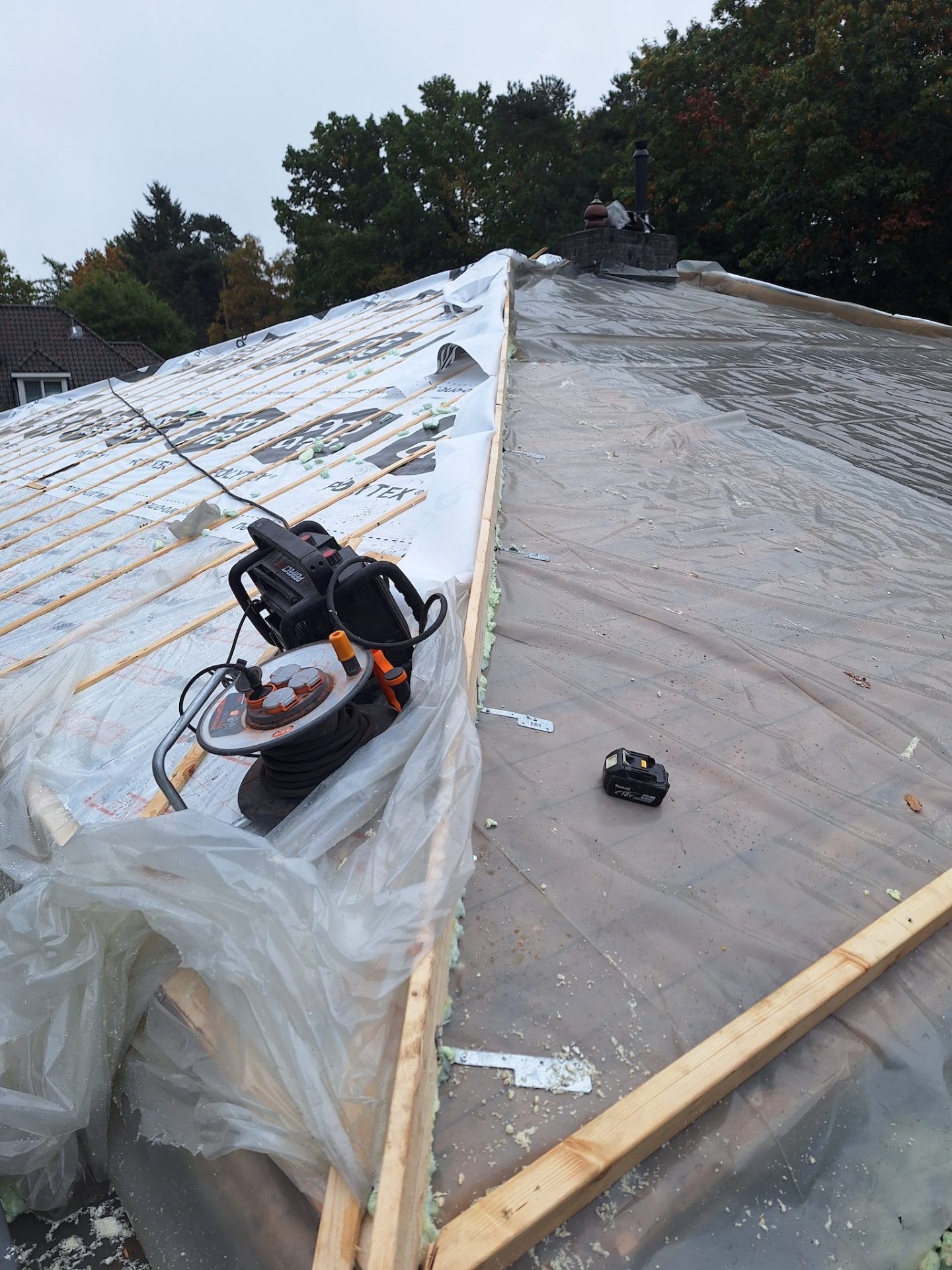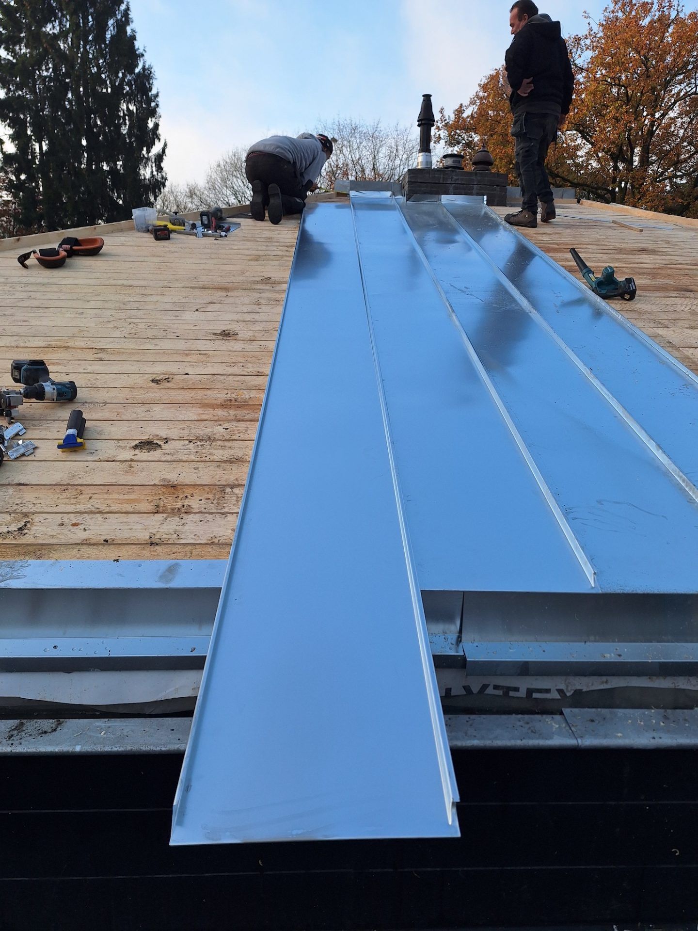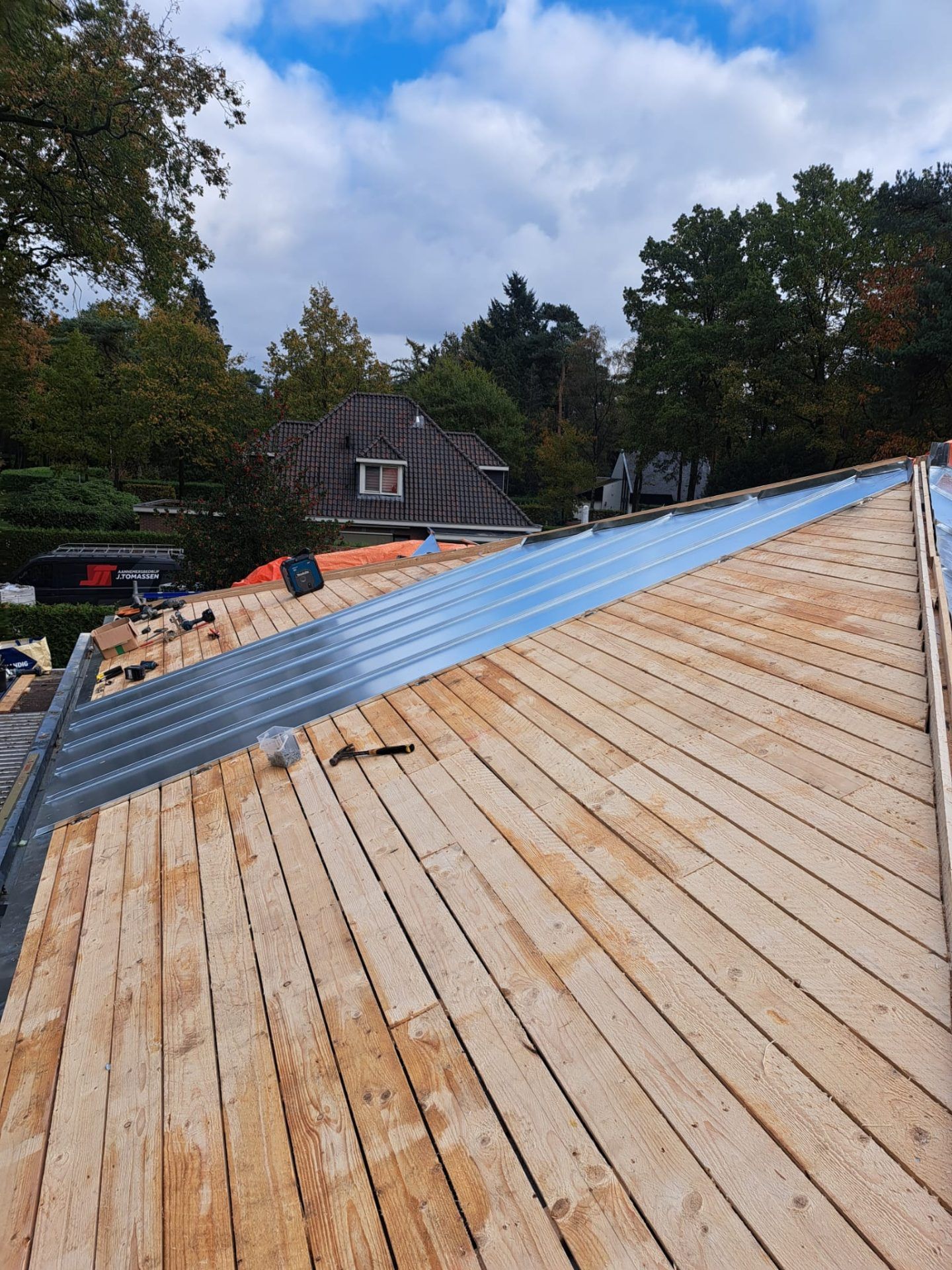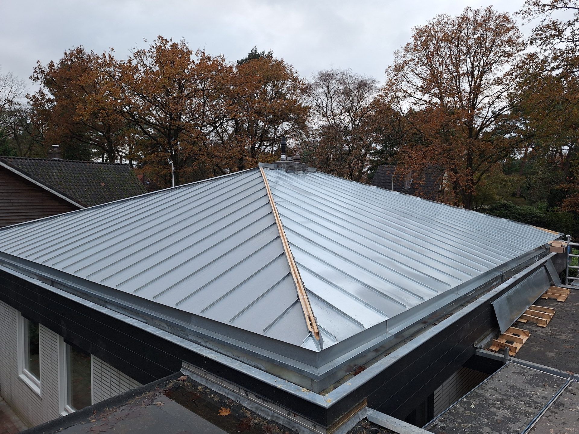 Bij dit project in Ermelo hebben we het gehele dak voorzien van blanke zinken Felsbanen. Het gaat hier om een dak van ongeveer 150 m2 waarbij er tevens dakisolatie is toegepast en de dakgoten en regenpijpen rondom het huis volledig zijn vervangen.